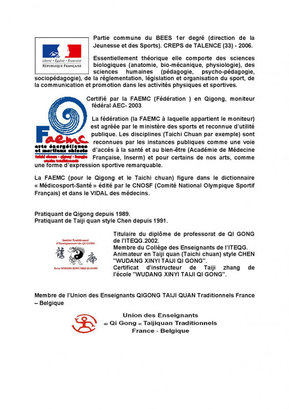 l'abapac donne des cours de Taich de Qi gong et de Taijizhang à Gujan Mestras sur le Bassin d'Arcachon